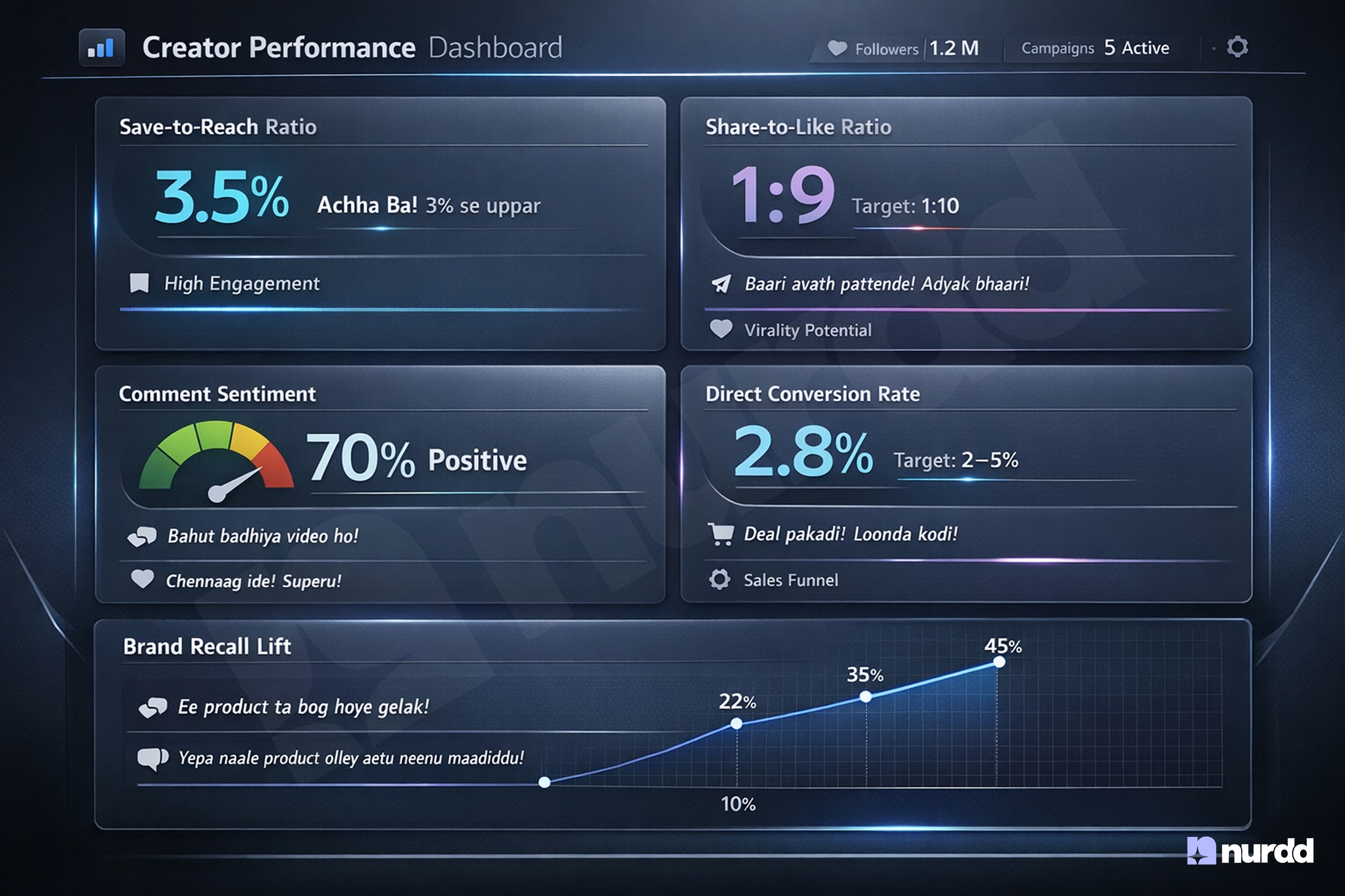 AI-Analysed Comment Sentiment is the percentage of comments that express positive or genuinely inquisitive intent, as measured by natural language processing. The distinction is not subtle: a comment that says "gorgeous ๐" is not the same as one that says "does this work on oily skin?" or "where do I find this in Mangaluru?" The latter represents active purchase consideration. For creators producing vernacular content in Bhojpuri, Tulu, or Haryanvi where AI sentiment tools can now process regional dialects, this metric separates authentic community engagement from the shallow engagement pods generate. The benchmark is 70% positive or inquisitive sentiment.