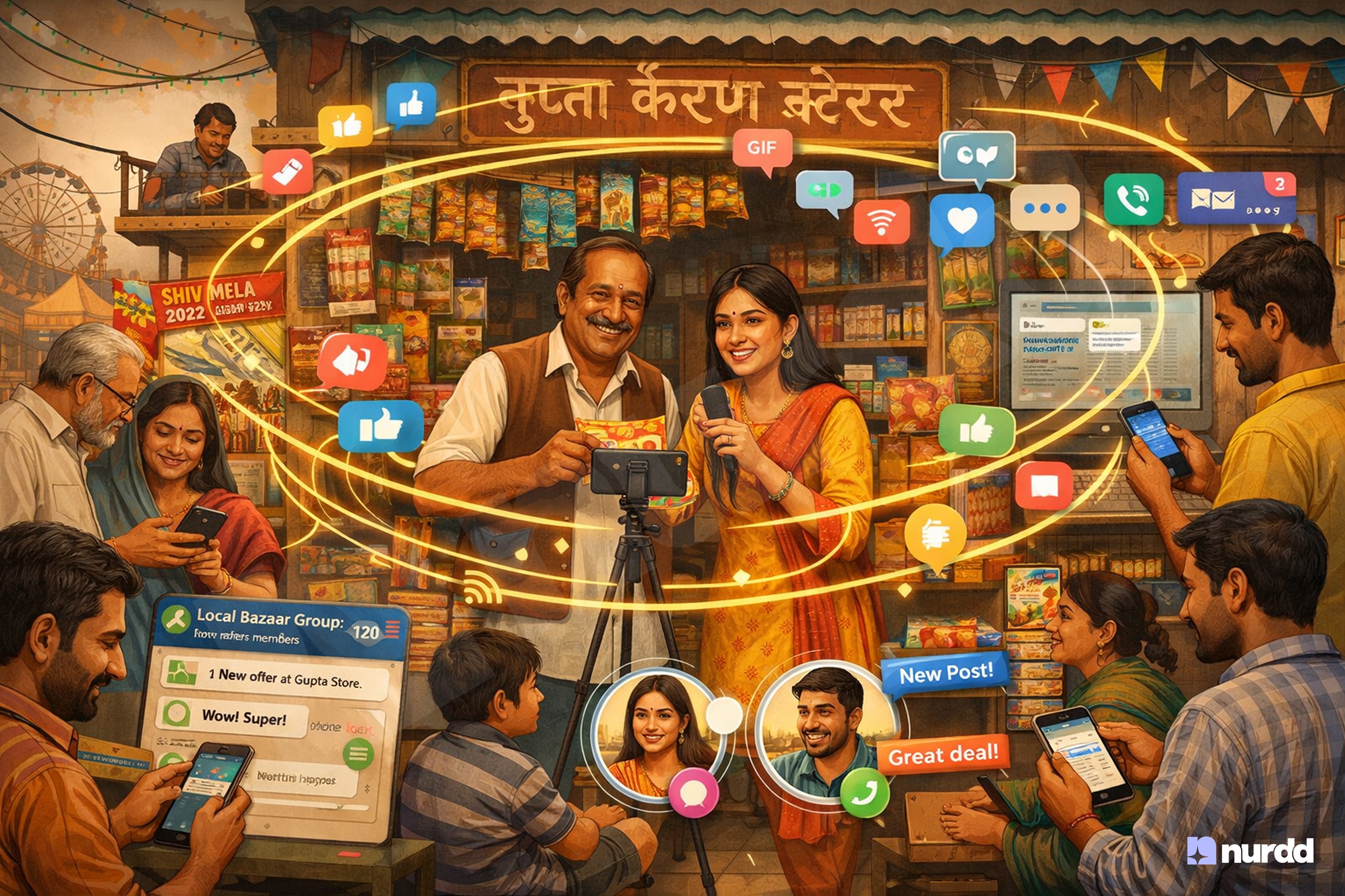 Nano and micro-influencers in vernacular languages the creators with 2,000 followers in a specific district, known to their community the way a kirana store owner is known are the intermediaries that bridge this trust gap. These are not content creators in the traditional sense. They are neighbourhood experts whose recommendations carry the weight of personal endorsement. Combining their digital presence with phygital touchpoints appearances at local melas, shop-front branding at the kirana itself, WhatsApp community posts in the local dialect creates a trust loop that national media spend simply cannot replicate.