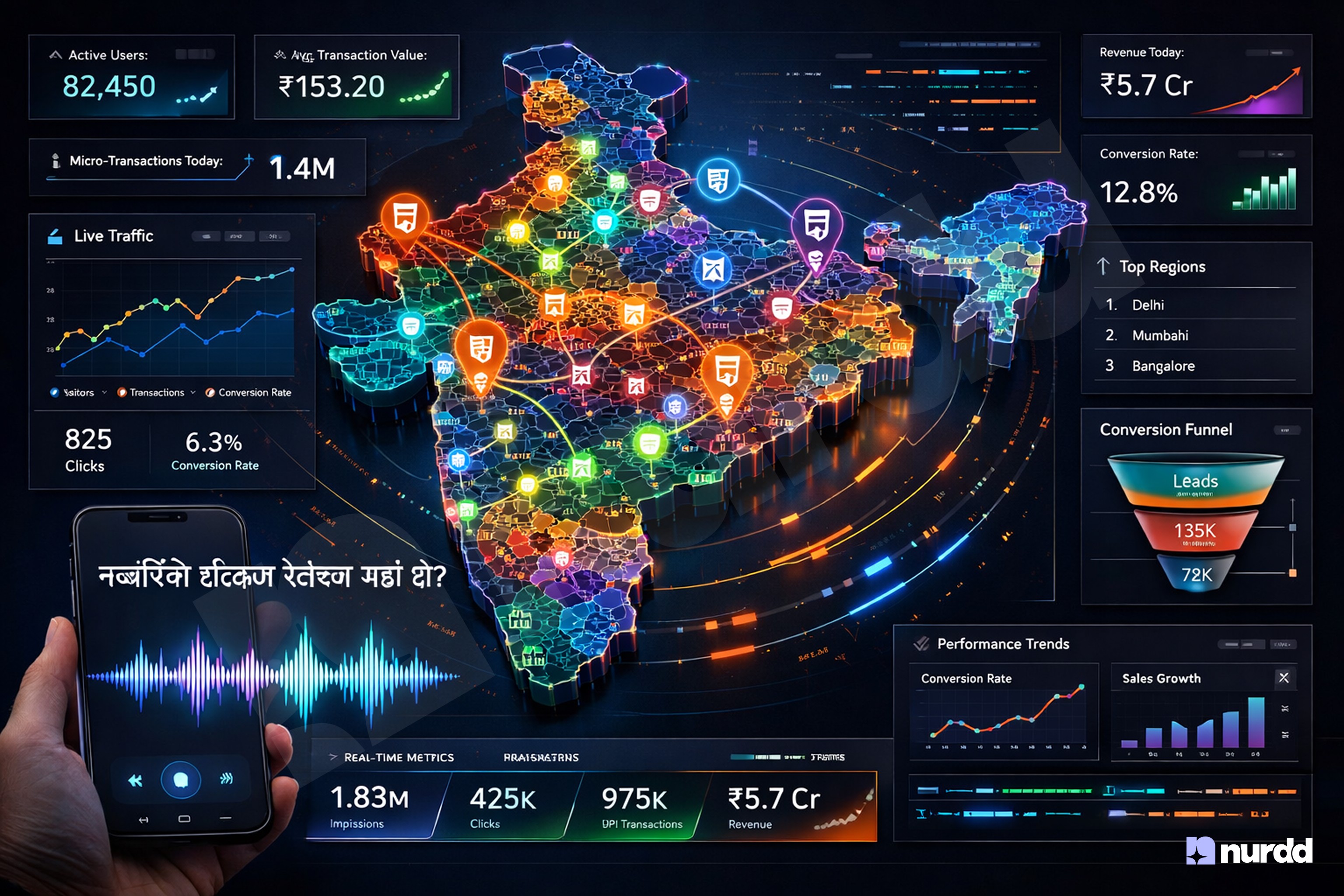 The answer is Polygon Targeting geofenced analytics that track impressions and conversions at the pin-code or even village level, tied to UPI transaction data. Over 70% of Tier-2 and Tier-3 searches are already happening in local languages [3], which means regional campaigns generate highly trackable, intent-rich signals.